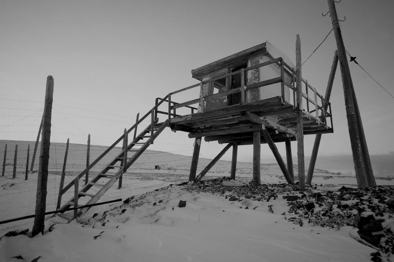 Ноябрь. Белые улицы и замороженные дома-монстры, до первых этажей которых не дотянуться рукой: из-за вечной мерзлоты здания стоят на сваях. В горах за промышленной зоной Норильска есть брошенный лагерь Норильлаг. Это территория максимально жестокая — человеку негде укрыться и негде спрятаться, горы продуваются насквозь. Рассказывают, что заключенные в пургу брались за руки и таким строем шли на общие работы в угольные шахты или на строительство Норильска, и точно так же возвращались в свои бараки. Неугодных в эту цепь не брали, и тогда их навсегда поглощала пурга.