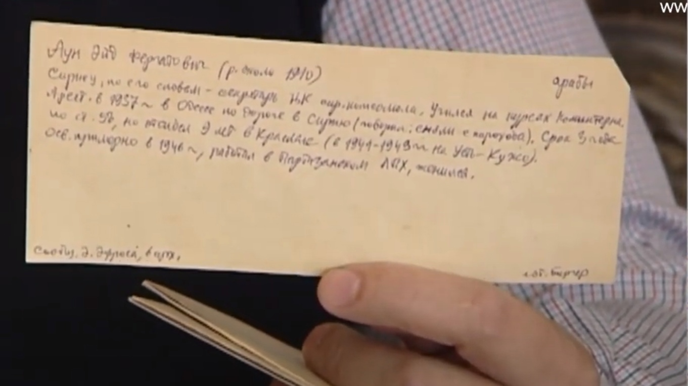 В книге памяти – их вышло уже 14 – одних только Шевчуков десятки и никто и не подумал, что один из них – дед знаменитого музыканта. Это сомнительный повод для гордости, но только по знаменитостям, которые отбывали ссылку у нас, наберется книга. У Бабия есть папки из архива ГУВД с делом Георгия Жженова и жены Буденного – Ольги Михайловой. Папка с делом Виктора Крамарова – отца Савелия Крамарова. Также дело Ариадна Эфрон – дочь поэтессы Марины Цветаевой. Екатерина Максимова – жена разведчика Рихарда Зорге. И Анна Книппер-тимирева – гражданская жена Колчака.