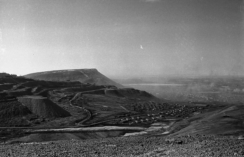 Крыши посёлка Южный. Вид с северо-восточного склона горы Рудной. Фото 1956-57 годов.