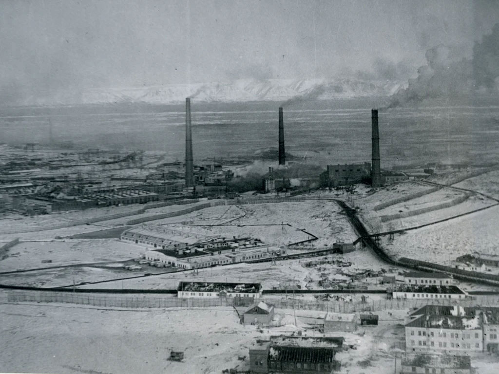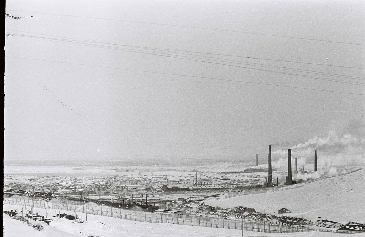 Ликвидация НорильЛАГа в 1956 году превратила бывшие лаготделения в посёлок Южный. На фото вид на поселок с юго-восточного склона горы Рудная. В левой нижней части снимка хорошо видны двухэтажные корпуса и прилегающие постройки бывшей Центральной больницы лагеря (ЦБЛ), позже - Городская больница № 2.