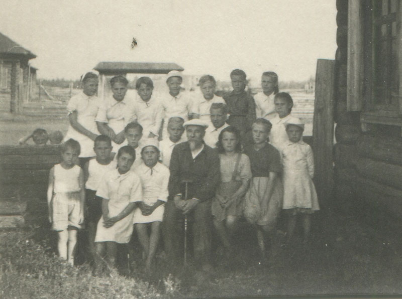 Берёзовка, начало 50-х годов. Александр Смирнитский с детдомовскими ребятишками.