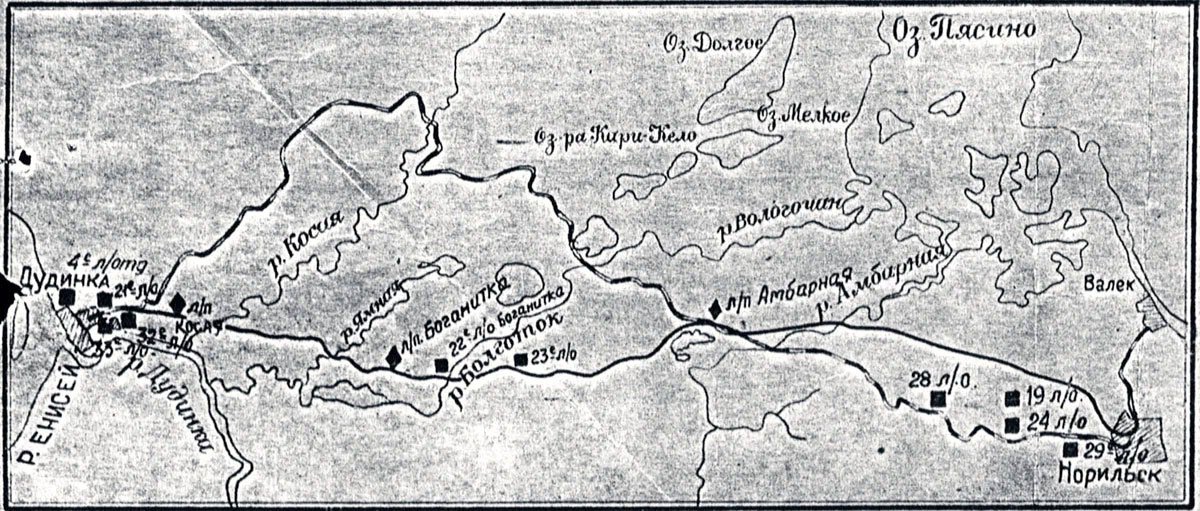 Схема лаготделений и лагпунктов Норильлага.