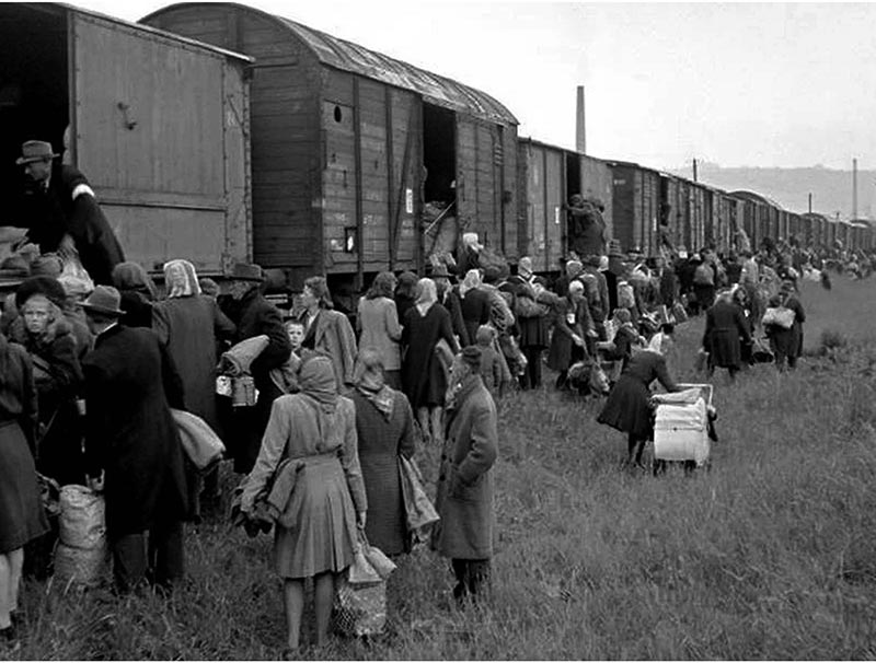 Идёт погрузка депортированных в вагоны