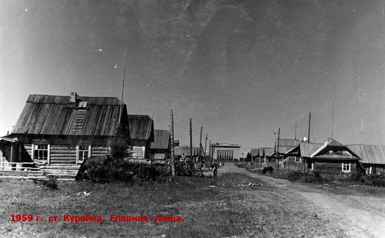 Село Курейка, главная улица, на дальнем плане – пантеон, за ним Енисей, 1959