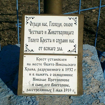 с.Мокрушинское. Крест на месте Свято-Никольского храма