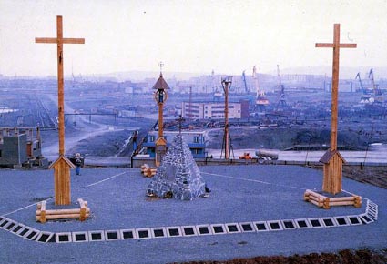 Основная идея – перед Богом все равны, независимо от вероисповедания. Перед началом проектирования архитекторы должны были учесть то обстоятельство, что весной селевая масса с водами наплывает со склонов горы Шмидта и размывает территорию мемориала. Требовался водоотвод, но с конструктивной точки зрения, как говорит Александр Соболев, сооружение это малопривлекательное. А Норильская Голгофа и так довольно мрачное место. В итоге были решены две задачи: создан памятник, который композиционно вписался в канву мемориальной зоны, и техническое сооружение, отсекающее талые воды от мемориального комплекса.