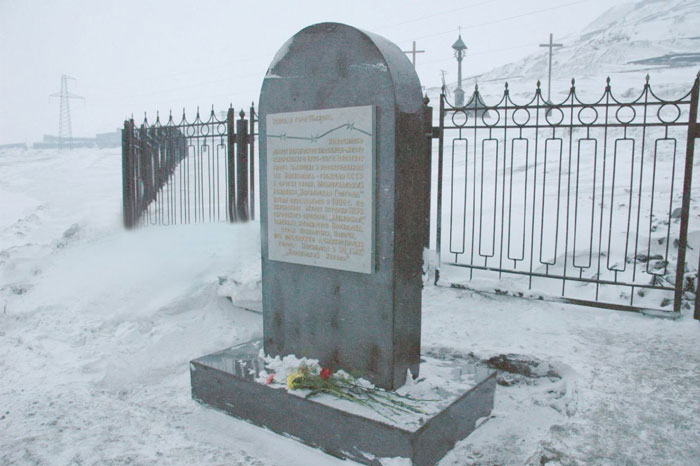 Открыт 30 октября 2004 г., установлен по инициативе Музея истории освоения и развития НПР на средства Администрации Норильска. Авторы С. Слесарева, А. Соболев.
