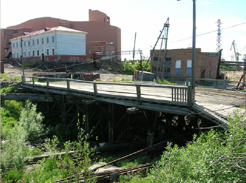 Это простой деревянный мост через ручей у здания почты в Дудинке, но именно через него пришлось пройти всем политзаключённым Норильлага. "Это единственный объект, относящийся к эпохе гулаговской истории Дудинки 30-50-х годов, и он сохранился практически без изменений. Молчаливый свидетель тяжёлых дней, имеющих самое прямое отношение к становлению сегодняшнего Таймыра, это - Мост Памяти, он нужен потомкам".
