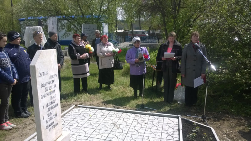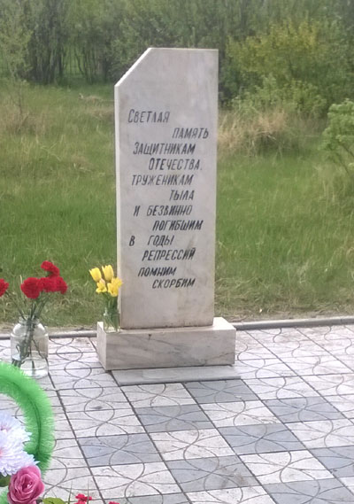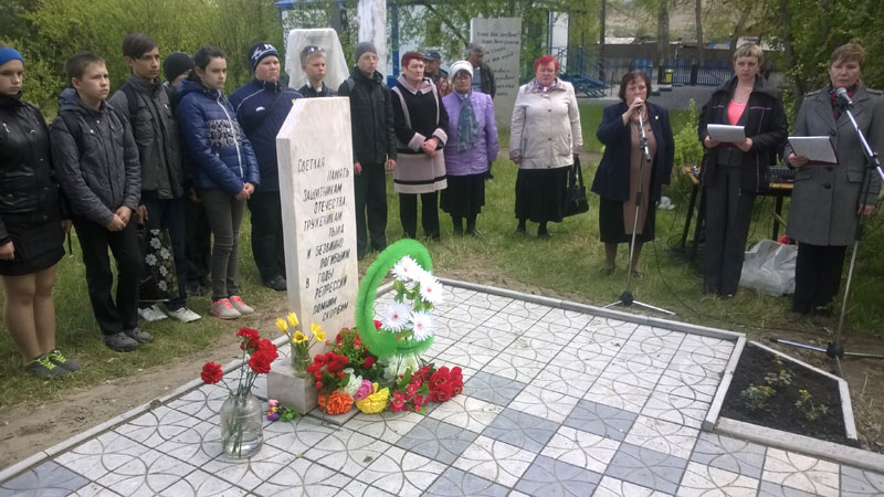 "Лебяжинский" памятник имеет совершенно чудную историю. Пенсионер Александр Яковлевич Фиалковский задумал поставить этот памятник в память о своём репрессированном брате и о других репрессированных. Долго копил деньги и памятник купил, но умер, не успев его установить. Некоторое время он лежал невостребованным, а потом за дело взялся Федор Александрович Линдт, из депортированных немцев. Подключилась руководитель районной организации репрессированных Фрида Людвиговна Щукина (на первой фотографии она с Ф.А.Линдтом). Краснотуранский предприниматель Виктор Эдмондович Банвемир, тоже из репрессированных, бесплатно дал плитку для благоустройство. А дальше всё сделал Федор Александрович своими руками, благо он на все руки мастер. Вот такой народный памятник, поставленный даже не в райцентре, а в обычном селе.