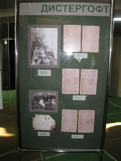 На выставке в "региональном блоке" представлены письма из лагеря первого директора заповедника "Столбы" Александра Леопольдовича Яворского и сотрудника Хакасского областного финансового отдела Ионатана (Иоганна) Готлибовича Дистергофта. Этот раздел выстави подготовило Красноярское общество "Мемориал" совместно с Красноярским музейным центром.
