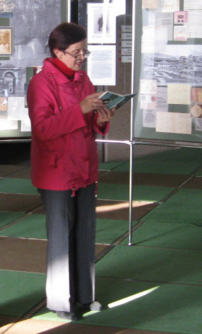 читает стихи, посвященные её деду,