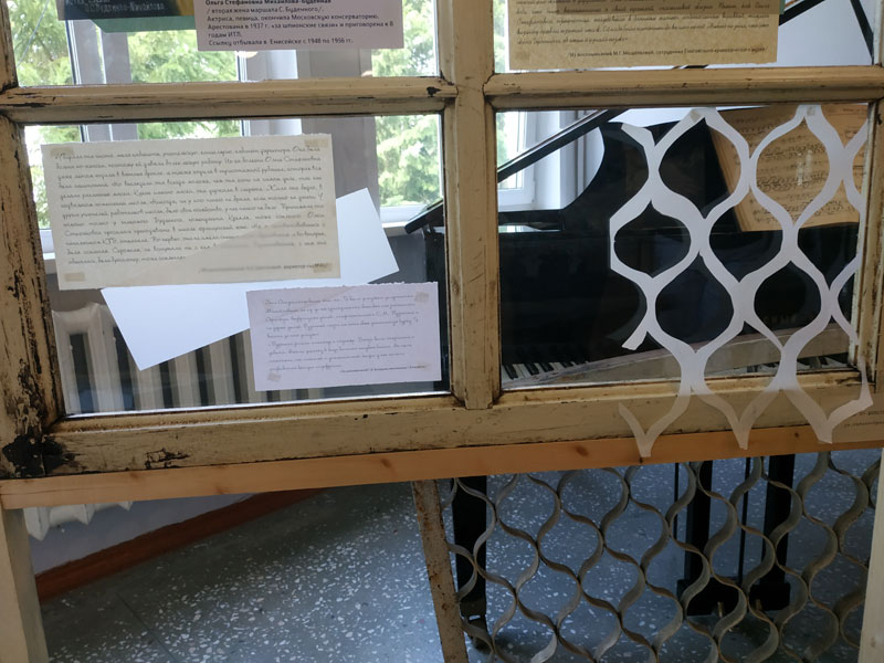 Выставка подготовлена членом Красноярского "Мемориала", преподавателем Енисейского педагогического колледжа Ириной Моисеевой. Выставка рассказывает о ссыльных в Енисейске. Особенность экспозиции в том, что материалы размещены на стеклах окон из домов, в которых жили ссыльные. Проект выставки разработан на хакатоне "Свобода памяти" (2019), проведенном Фондом Фридриха Науманна и Российским фондом культуры.