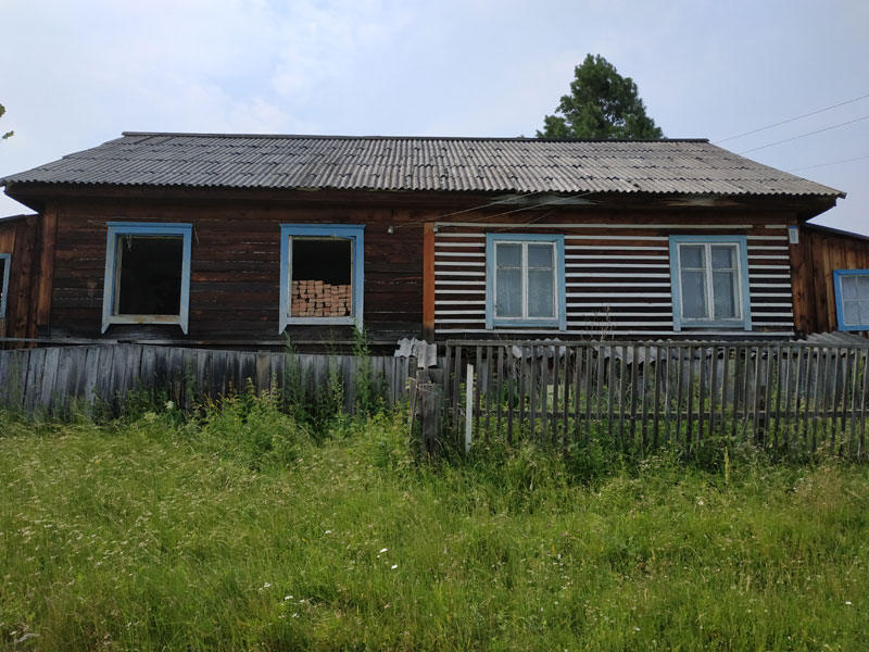 Дом разрушается, жители растащили окна и много ещё чего.