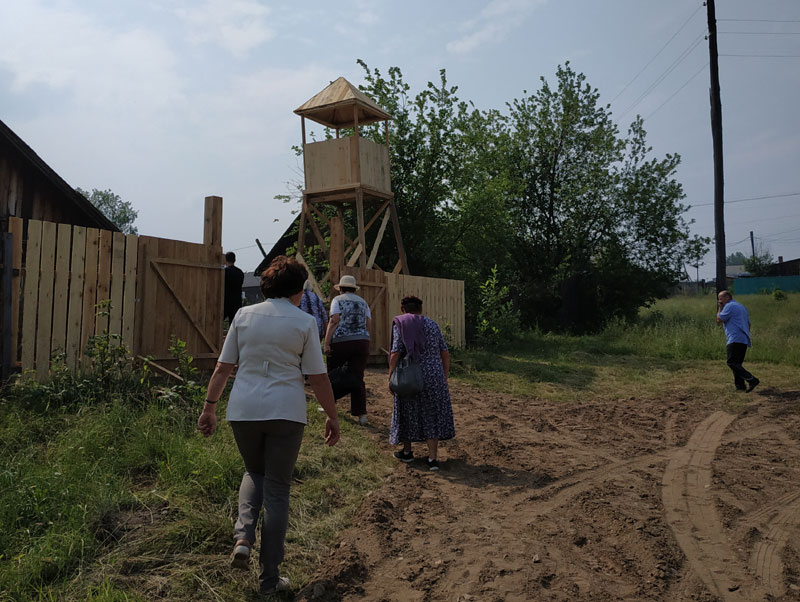 А теперь построили и забор с вышкой.