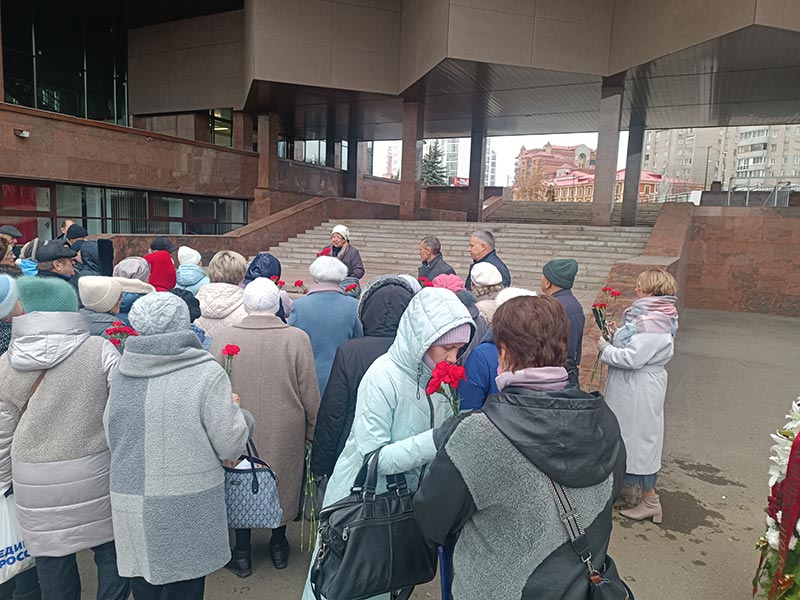 Возлагают цветы члены организаций жертв репрессированных