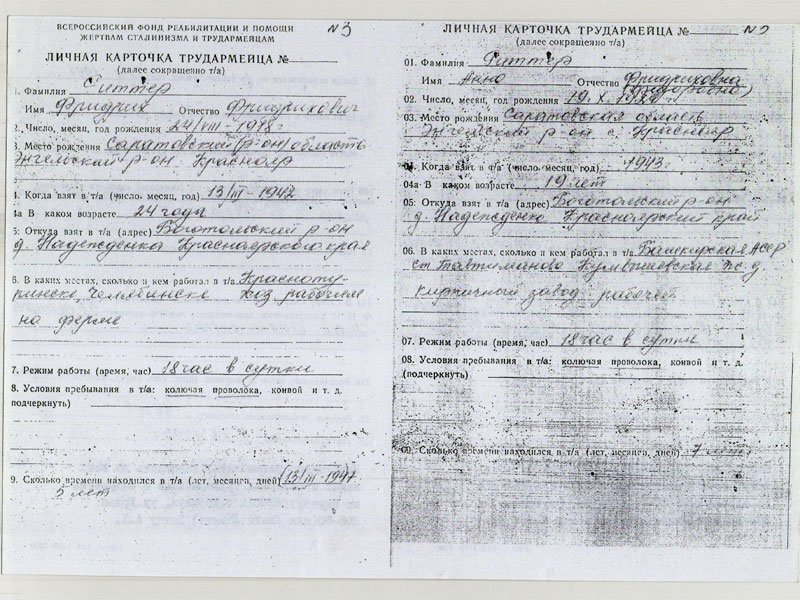 - Ей было 20 лет, она была медсестрой, работала в соседнем поселке и едва успела вместе с семьей выехать. Интересная деталь: каждое село вывозило по очереди предыдущие к эшелону. Анна недолго была в Юрьевке Боготольского района, в 1942 годы она была отправлена в трудармию и по 1949 год познала все её прелести в Ишимбалайге Башкирской АСС. Но и возвратившись в Сибирь, она долго еще испытывала недоверие к себе: работала разнорабочей, дояркой, телятницей, и только в 1956 году она смогла выйти на работу в больницу по своей специальности, она была авторитетным, уважаемым доктором до самой пенсии.