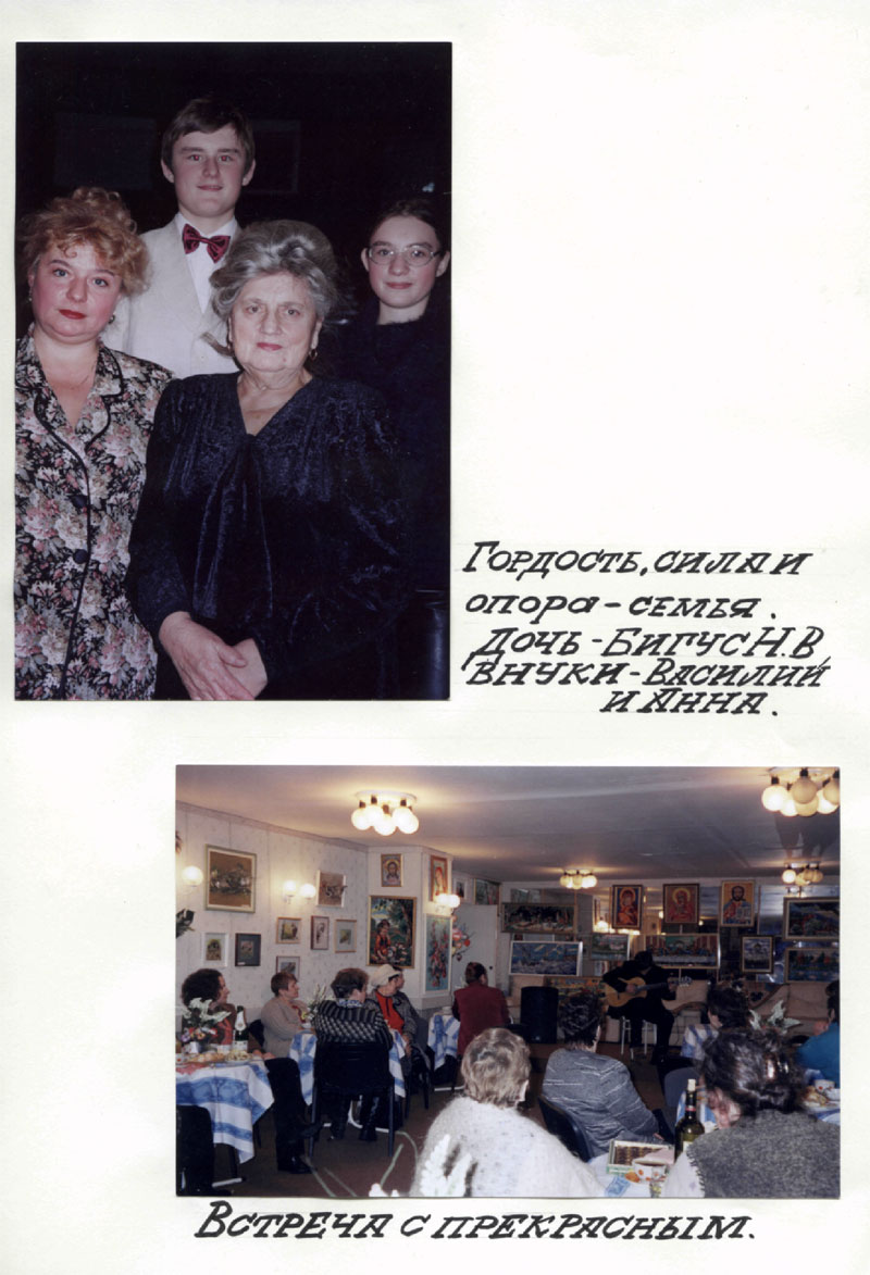 Вся семья Анны Васильевны перенесла ужас сталинских репрессий, но выстояли перед несправедливостью и цинизмом, осознавая свою правоту и невиновность. И сегодня Анна Васильевна сильна и уверена в завтрашнем дне, ведь рядом дорогая семья, которая даёт силы к жизни и творчеству.