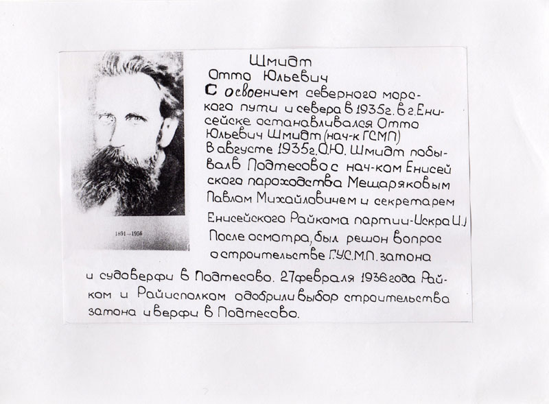 Енисейске останавливался начальник ГСМП Отто Юльевич Шмидт. В Енисейске он