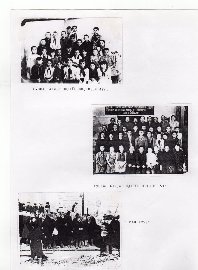4 апреля 1931 года по постановлению Ленинградского Пригородного райисполкома было указано: «Не позднее 7 апреля 1931 года выселить за пределы района кулацкое хозяйство Суокаса Семёна Семёновича, проживающего в деревне Порошкино, Юкковского сельсовета без указания срока высылки. Семью из четырёх человек отправили в город Красноярск в скотском вагоне, дав с собой пять мешков хлеба. По дороге младшая дочь Тюня-Лиля в возрасте двух месяцев заболела и умерла. Сопровождающие выбросили ребёнка из вагона, не дав даже родителям похоронить своё дитя.