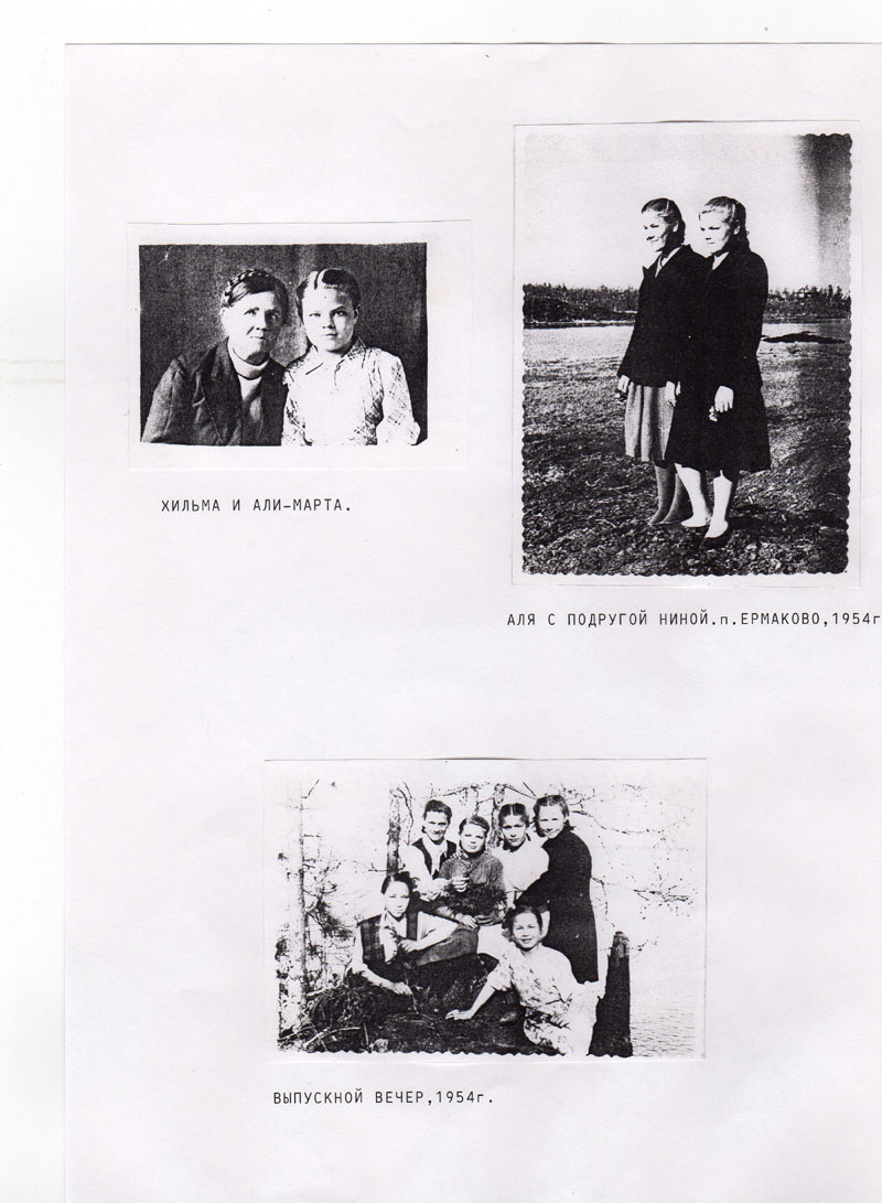 В 1946 году младшая Аля пошла в школу. Проблем в семье не убавлялось. Нехватка денег угнетала Хильму. Придя с работы, она вновь уходила в поисках заработка: белила, мыла, стирала. Дочери помогали ей во всём. Летом было легче, подспорьем был лес. Ягоды, грибы, полевой лук собирали с раннего утра, а к обеду надо было быть на базаре, чтобы продать. Анна разошлась с мужем и вернулась домой с маленьким Володей. В 1947 году Али-Марта заболела берцулезом. Выходили её ссыльные врачи Бендик и Петров. Она была ещё очень слаба, но однажды объявила голодовку, сказав, что не будет кушать до тех пор, пока ей не позволят половину пайка отдавать Володе, который каждый день кричал ей в окно: «Аля, исть». Врачи, опасаясь за жизнь девочки, позволили ей отдавать часть продуктов.