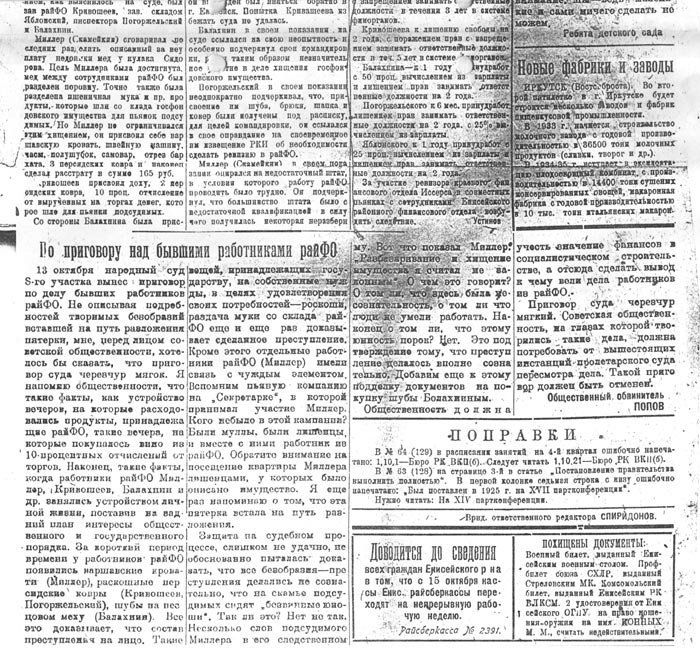 я обнаружил в подшивке газеты «Енисейская правда», которая часто публикует