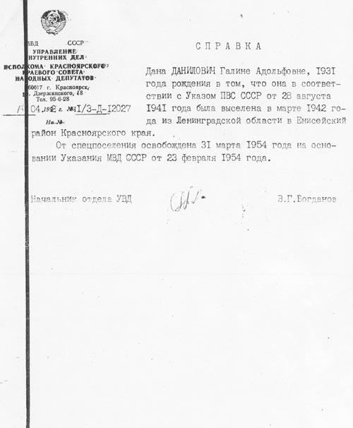 Людмила Адольфовна Данилович в настоящее время живет в Красноярске и работает начальником машиносчетной станции.