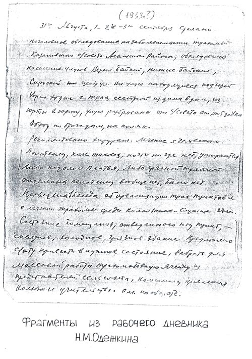 Из дневников Николая Максимовича видно, как трудно шла организация противотрахоматозной службы. Местные сельсоветы не спешили выполнять решений облздрава. Даже на трахому, как и на все остальное в то время, существовал 5-летний план борьбы с трахомой.