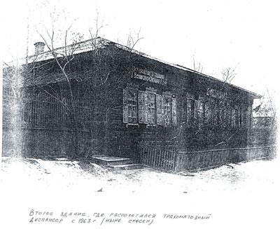 Что скрывается за сухими строчками постановления? Ежедневный, кропотливый труд, зачастую без выходных и отпусков. Постановление необходимо было выполнять, а своего здания не было. Приютились на базе терапевтического отделения Абаканской объединенной больницы, располагавшейся в деревянных бараках. Начинали с 10 глазных коек. Это была стартовая площадка для дальнейшего развития глазной службы области. А пока только 2 врача-окулиста и 16 средних медработников на всю область. Зато это были энтузиасты своего дела. Не считаясь со временем, объезжали хакасские улусы, обследовали всех без исключения, тут же проводили лечение.