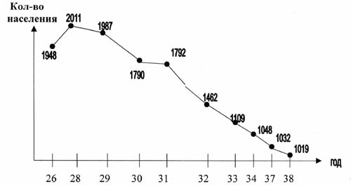 На протяжении 30-х г. население деревень неуклонно уменьшается. Так, за 10 лет убыль населения составила 992 человека. По свидетельствам старожилов, в годы репрессий часть населения оказалась в лагерях в районе с. Степановка, других «угоняли» на север. Например, известен факт, что в с. Александровка в магазине милиционером была взята под стражу женщина, которую без объяснения причин увезли в неизвестном направлении. Больше ее в селе никто никогда не видел. В этот период времени начались лесозаготовки, также повлиявшие на количественный состав населения. Так как этот труд был «добровольно-принудительный», который в том числе распространялся и на женскую половину населения. В связи с этим семьи старались покинуть это место жительство. Значительная часть населения уходила на заработки за пределы своего с/совета. По сравнению с механическим движением естественный прирост и убыль населения был незначителен. Нужно отметить социальный состав населения: