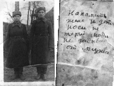 Переписки прадеда с женой в военное время не сохранилось, но остались фотографии, которые присылал Евтропий с войны и снимки, которые посылала Анна мужу. И надписи на обратной стороне этих старинных снимках говорят о многом. Прадед, отправляя фотографию с фронта, писал: «Напаметь жене и детям носи не теряй люби не забывай от мужа». Порой такие скупые надписи говорят больше, чем люди друг другу при встрече. Евтропий очень любил жену, детей, сам надеялся вернуться домой живым. И Анна послала мужу на фронт фотографию детей с надписью: «На паметь папе еслив любиш то прими а не любиш то порви дети Толя и Юра Потылицын снимали 3 мая 1944 года». Снимали специально, чтоб послать отцу на фронт. Евтропий до конца войны носил фотографию с собой, по его воспоминаниям она было для него чем-то вроде талисмана.