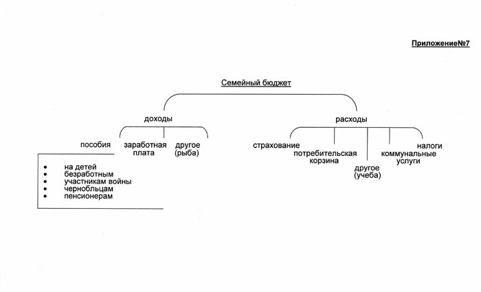 Для того чтобы эффективно использовать свои доходы, семья должна правильно составить свой бюджет, тщательно продумать покупки и делать сбережения для достижения своих целей. Для составления семейного бюджета (формирование семейного бюджета - Приложение № 7) необходимо определить список всех источников доходов членов семьи. Это зарплата, социальные пособия и проценты на сбережения. В статье расходов нужно перечислить все, за что надо заплатить в течение месяца: квартплата и услуги, питание, проезд, уплата налогов и взносов. В планируемые расходы так же включаются и сбережения на будущее.
