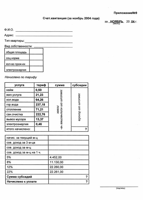 Примечания: платит за квартиру - 75 рублей в месяц, т.к. суммарный доход составляет сумму ниже официально установленного ПМ.