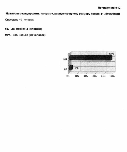 Рассчитать пенсию с точностью до рубля не возможно, т.к. каждый год она индексируется. Средний же размер пенсии составляет 1.380 рублей (без коэффициента). Возможно ли прожить на нее? (Приложение № 12 - опрос).