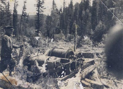 Трелёвка хлыстов лебедкой из труднодоступных мест. Центральный трос 500м. От него шли пасынки-чокеры. Трос таскали женщины. Лес брали в радиусе троса. Потом лебедку лошадьми перетаскивали на другое место. Работала лебедка от передвижных электростанций ПС-12, ПС-60 перевозимых лошадьми. На нижний склад лес возили на лошадях зимой по ледяной дороге.