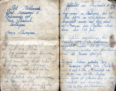 Бабушка вела дневник, вела записи с 1944 года. В Польше много было похорон, она записала песни, которые пели на похоронах, а также, она записала, дату и место где они находились и как передвигались по стране. На основе этих записей в тексте работы даны точные координаты передвижения её семьи.