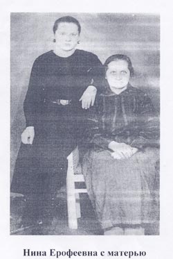 В Яе, в заключении, Нина Ерофеевна познакомилась со своим вторым мужем, у неё родились сыновья. Глядя на её маленькие иссохшие руки, комкающие платочек, которым она вытирала слезы, я поняла, как трудно ей вспоминать прошлое, годы лагерей. Это были не столько физические испытания, сколько огромный моральный удар.