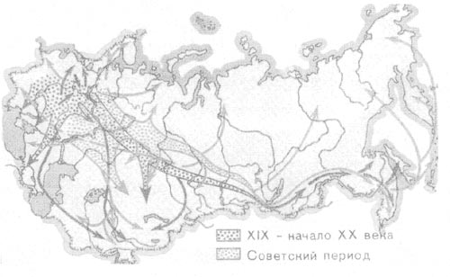 Основные направления миграции в XIX-XX веках.