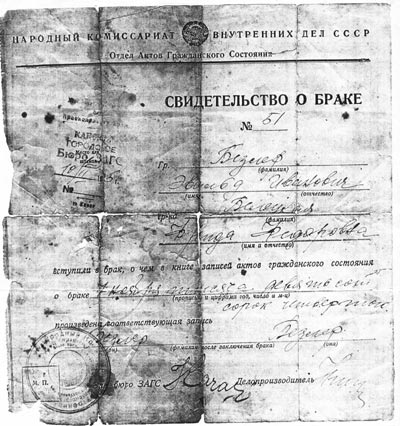 полюбили друг друга и в 1944г. они поженились (приложение: Свидетельство о