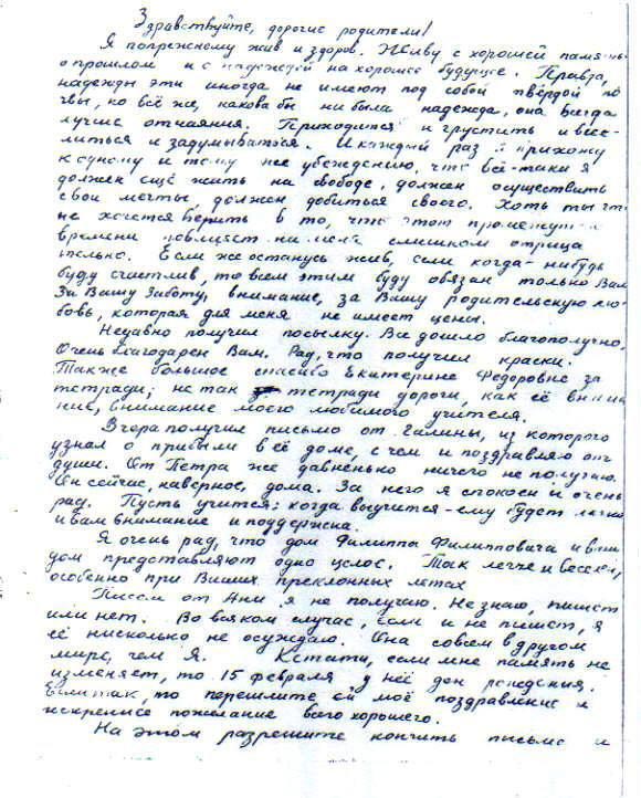 8. Письмо И.Н. Краснова своим родителям 1950 г.