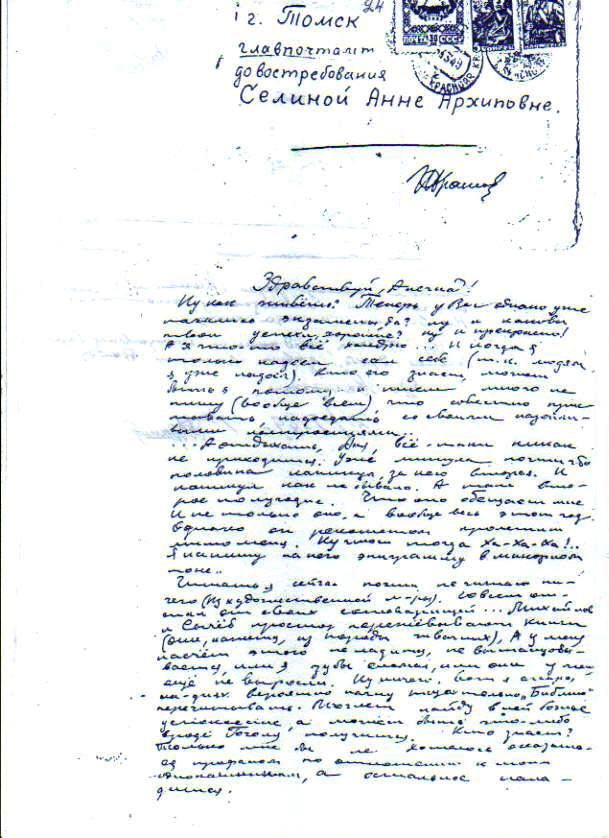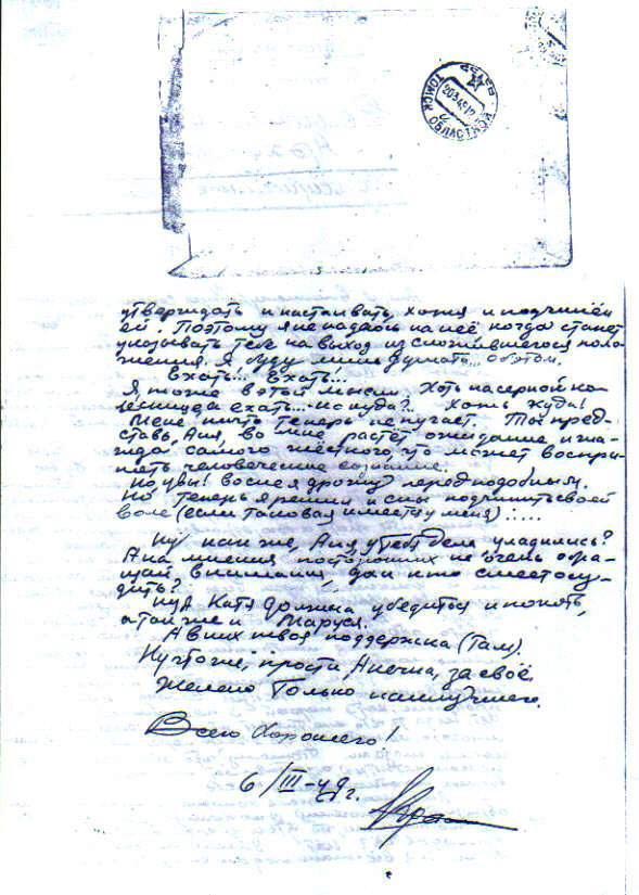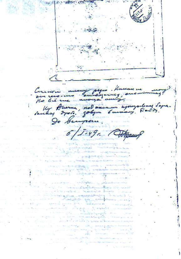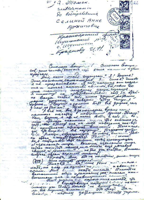 6. Письма И.Н. Краснова к А.А. Селиной. 1949 г.