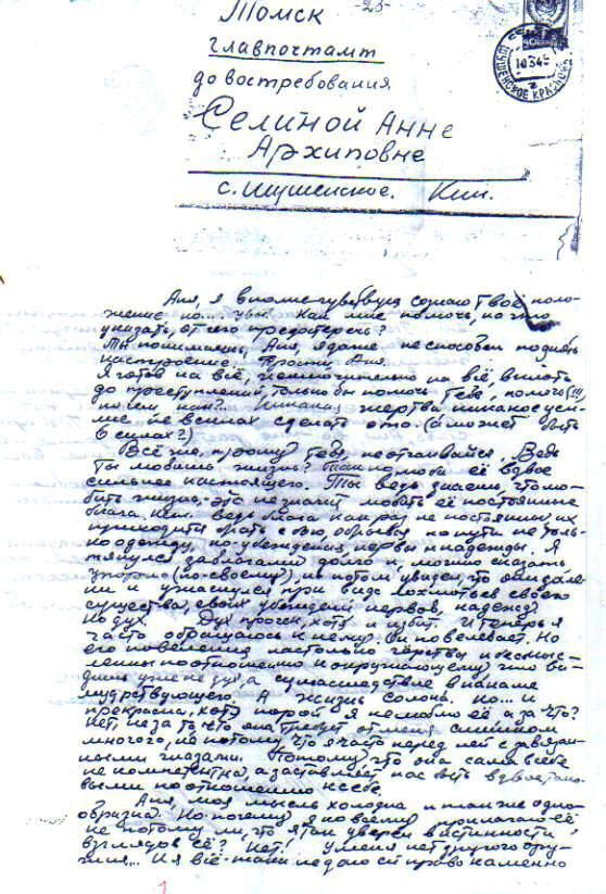 7. Письмо И.Н. Краснова к родителям. 1950 г.