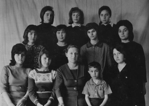 По окончанию 8 классов Людмила продолжила учебу в Южно-Енисейской школе в 9 и 10 классе. Жила в интернате – двухэтажное здание, красивое, было центральное отопление, в комнатах было всегда тепло. Жили ученики с поселков Кировска, Переходного, Партизанска и других. Много учащихся было – в каждой комнате жило по 4-6 человек. Мальчики жили отдельно от девочек. Замков в комнатах не было, вещи не терялись, жили они очень дружно и весело. Домой ездили в субботу после занятий (учились в основном в первую смену) на машинах. Иногда домой возвращались пешком в теплое время (если не было машины), шли всегда все вместе, смеялись, пели песни – эти 18 километров проходили в течение 3 часов. Завтракали, обедали, ужинали в столовой – цены были низкие, пять рублей хватало на неделю. В интернате жила группа учащихся из эвенков постоянно, родители были в стойбищах в тайге – были коренными жителями этих мест, уезжали домой только на летние каникулы. Иногда родители этих детей приезжали на оленях на Кировский во время голосования. Люду в школе сразу выбрали на собрании старостой интерната. Большая нагрузка была – нужно помочь в учебе с отстающими учениками, наводить порядок в комнатах, проводились соревнования по чистоте и уюте комнат. Часто проводили вечера в интернате, гуляли по улицам вечерами, помогали носить дрова в котельную при интернате – в общем, жили одной дружной семьей.