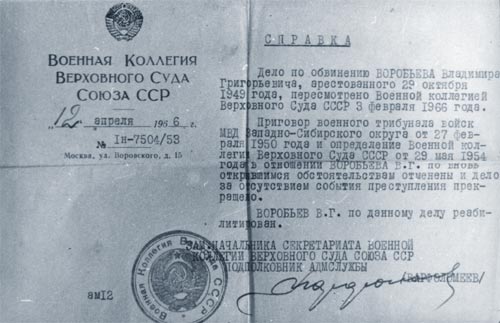 ВОРОБЬЁВ В.Г. по данному делу реабилитирован.