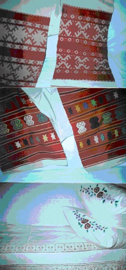 рубахи разноцветными шелковыми и атласными лентами кружевами, вышивкой,