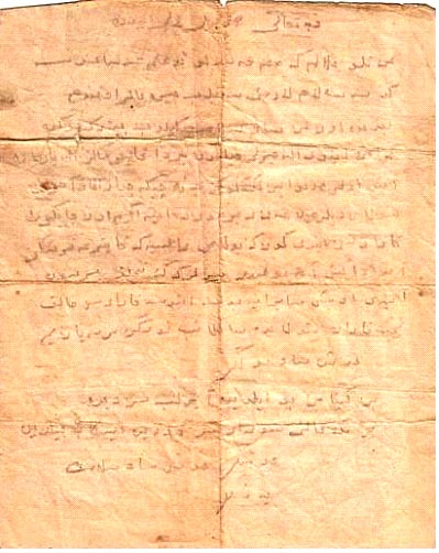 Несколько дней после ареста, 2 июня 1938 года, Хисматуллин Фазулла Хисматулович написал письмо домой. Письмо было написано на арабском языке.