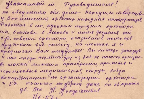 И без ложной скромности могу сказать, что мы на самом деле были очень хорошим коллективом. Ведь недаром входили в десятку лучших оркестров страны, шефом у нас был Государственный академический оркестр. Мы держали связь с московскими музыкантами, выписывали из Москвы различную литературу.
