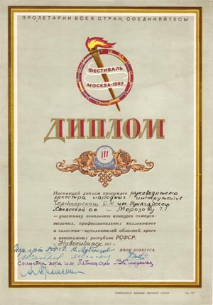 Когда в 1956 году Красноярскому краю вручали орден Ленина. И после торжественной части был устроен концерт, от Хакасии пригласили именно наше объединение.