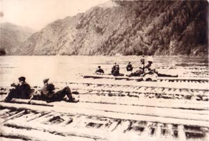 Енисею еще сплавляли лес, вот группа временно и примкнула к плотогонам. Зато