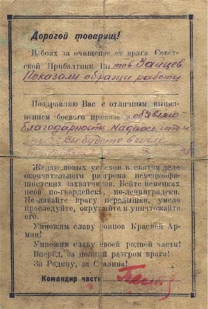 Только ночью дед Яков выполз на берег. Кругом были сотни трупов погибших солдат. Преодолевая боль и слабость, дед полз всю ночь. К утру, он добрался до небольшой деревеньки. На краю деревни стоял сарай в этом сарае и спрятался он. Его нашла белорусская женщина, которая, рискуя собой, выхаживала его несколько дней, а потом переправила к партизанам. Из партизанского отряда тяжело раненого солдата отправили лечиться в госпиталь, который находился в городе Златоуст.