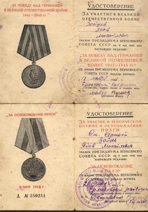 В блокадном городе тяжело приходилось и жителям, и солдатам. Испытывали на себе и холод, и голод. Как–то солдаты, будучи в наряде на кухне, съели, кочан капусты. Об этом узнало начальство. За это правонарушение лейтенант, который не досмотрел эту кражу, был расстрелян перед строем, то есть был проведён показательный суд. Так добивались строжайшей дисциплины в условиях военного времени. После снятия блокады Яков Михайлович продолжал воевать, освобождая свою страну и страны Западной Европы от немецких захватчиков. Война закончилась для него в Чехословакии, в 18–ти километрах от Праги. Здесь он услышал радостную весть о том, что кровопролитная война, которая длилась почти 5 лет, закончилась победой Советских войск.